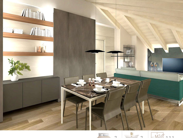 A due passi dal lago e dalla spiaggia attrezzata, in elegante palazzina con piscina nuovo Attico mansardato con vista lago servito da ascensore composto da: ingresso, spaziosa zona living con cucina integrata, ampie vetrate sulla terrazza che creano continuità tra interno ed esterno, terrazza perfetta per pranzi e cene all'aperto, disimpegno, due camere da letto e due bagni. Completano la proprietà un garage doppio e una cantina/lavanderia. Questa soluzione immobiliare dalle finiture di alto livello (fotovoltaico, riscaldamento a pavimento, aria condizionata, parquet, travi in legno bianche, classe energetica A4... ) combina efficienza energetica con comfort moderno. Le immagini pubblicate sono dei rendering servono a visualizzare le potenzialità di arredamento e design, permettendo di immaginare lo spazio con mobili e stili diversi (moderno, minimal... ) prima di scegliere l'arredo definitivo.